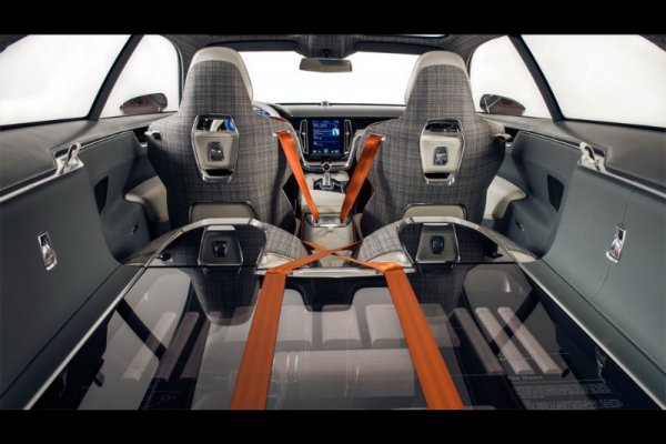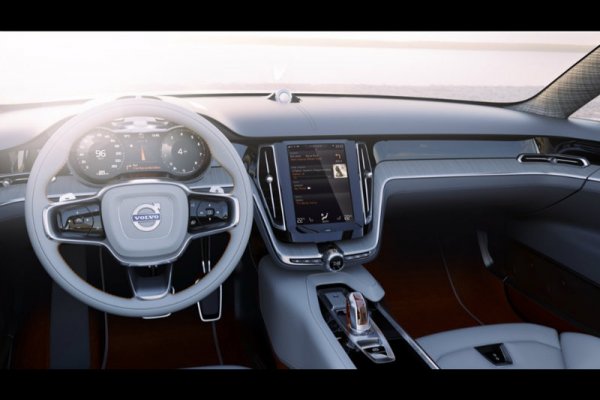 Самым интересным в новом универсале является салон. Светлый и простой интерьер вскоре станет фирменной чертой всех серийных Volvo. Место центральной консоли занял большой сенсорный дисплей, а рычаг коробки передач стал меньше серийных аналогов.