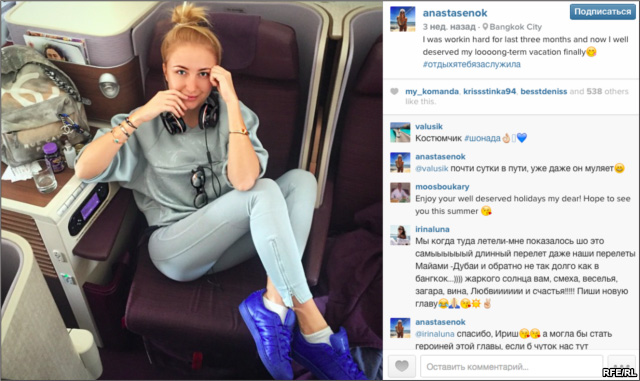Бросается в глаза количество и частота путешествий на дорогие мировые курорты. Так, только за последние полгода Анастасия посетила, по меньшей мере, 9 стран в различных частях планеты - Францию (Канны, Сен-Тропе), Монако (Монте-Карло), США (Майами), Чехию, Арабские Эмираты, Таиланд, Сингапур, Италию, Мексику.