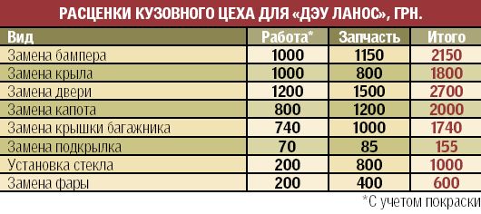 В методических рекомендациях МТСБУ прописаны примеры повреждений и суммы ущерба. Однако не стоит забывать, что цены на запчасти постоянно меняются. Кроме того, в реальной жизни двух одинаковых ДТП не бывает. Правда, с 2013 года максимальный размер выплаты по Европротоколу будет увеличен до 25 тыс. грн. — запас вполне достаточный. Для ориентира мы составили расценки для недорогой иномарки (см. таблицу).