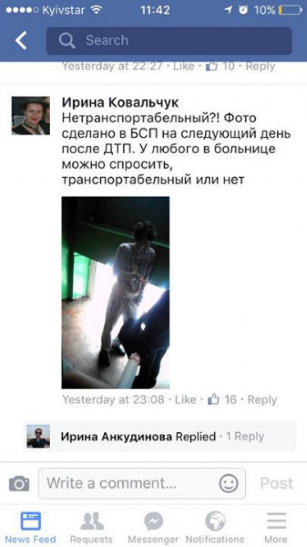 Родители Толстошеева утверждают, что у их сына порок сердца, врач киевской больницы рнее говорил, что молодой человек нетранспортабелен, поэтому не может появится в зале суда. Однако, журналист Дмитрий Гнап опубликовал фотографию из больницы, которая была сделана в курилке. На ней парень стоит на ногах и с кем-то беседует...