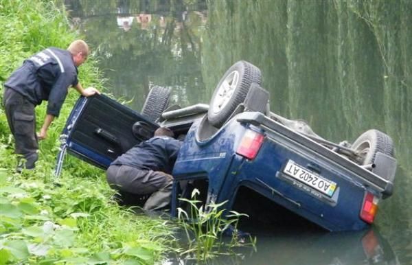 В воскресенье, 31 июля, в городе Берегово, недалеко от ресторана «Золотая пава», можно было наблюдать, как в воде канала реки Верке плавает перевернутый вверх колесами автомобиль Нива, сообщает .