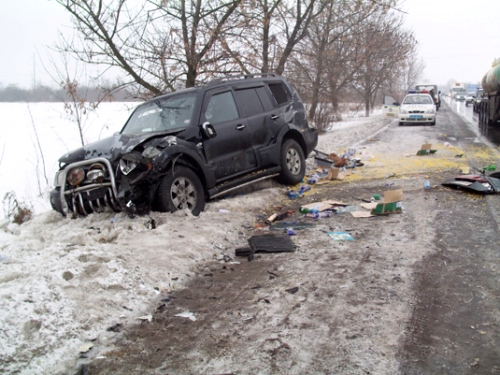 24 февраля 2012 года, около 8 часов утра, на 809 км трассы Киев-Чоп произошло крупное дорожно-транспортное происшествие. Водитель автомобиля ВАЗ-21114 по неизвестным причинам выехал на полосу встречного движения, где допустил столкновение с легковым автомобилем Mitsubishi Pajero, сообщает .