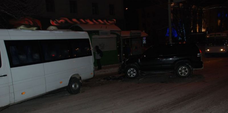 Вчера, 23 декабря, около 22:20 на остановке общественного транспорта бул. Шевченко джип на скорости врезался в маршрутное такси. Об этом сообщил рассказал очевидец происшествия.