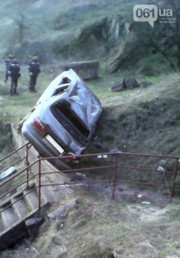 Автомобиль ехал с Хортицкого микрорайона в направлении центра города. Lanos застрял на металлической конструкции ступеней и из-за этого не попал в воду, сообщает .