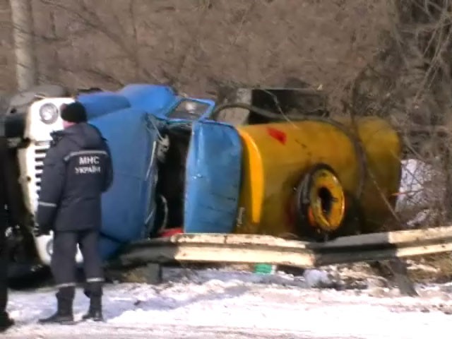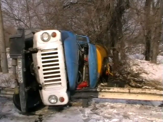 Это ДТП произошло в Запорожской области, на трассе Москва-Симферополь. По предварительным данным, водитель бензовоза не справился с управлением и грузовик слетел с дороги и перевернулся, сообщает .