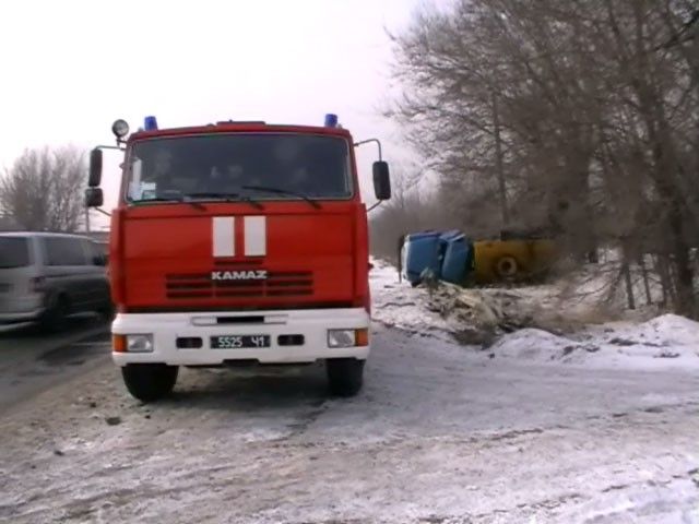 На проезжую часть из цистерны вытекло топливо. Прибывшие на место происшествия спасатели МЧС смыли топливо, дабы предотвратить возможность возгорания.