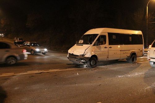 Авария с участием марштурного такси №9-А и автомобиля ВАЗ произошла 13 декабря на подъеме в сторону Космического микрорайона (район автовокзала). Как сообщили очевидцы, легковушка очень сильно повреждена, сообщает .