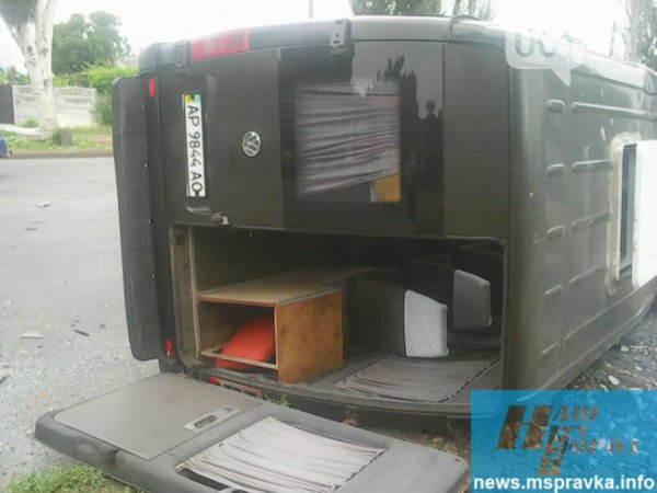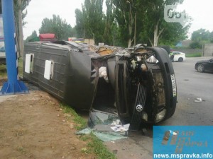 Авария произошла сегодня утром, 14 июля в Мелитополе. Водитель маршрутки, двигаясь по улице Ломоносова в сторону Запорожья, столкнулся с грузовым автомобилем ТМ «Мирненская». В результате столкновения маршрутка перевернулась. Об этом сообщает "Наш город". , сообщает .