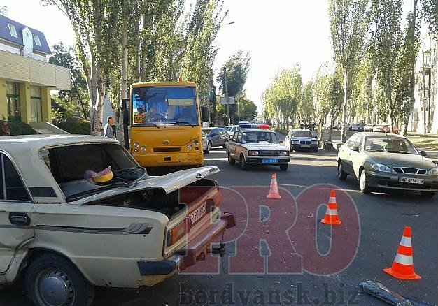 В четверг, 18 сентября, в центре Бердянска автобус "Эталон" с военными на высокой скорости наехал на стоячий на обочине ВАЗ-2106, сообщает .