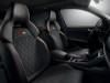 В салоне, прежде всего, обращают на себя внимание спортивные сиденья. Также в отделке использована алькантара с красной прострочкой, а руль со скошенным ободом обшит перфорированной кожей. Предусмотрена и виртуальная приборка.