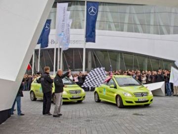В Mercedes-Benz B-Class F-Cell используются силовые установки на топливных ячейках. В них электричество для электродвигателей вырабатывается в процессе химической реакции между водородом и кислородом. Этим кругосветным путешествием немецкий производитель планировал показать состоятельность технологии топливных ячеек.