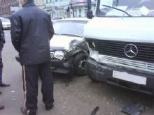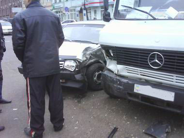 В 12 ч. 55 мин. на перекрёстке улиц Жилянской и Коминтерна произошла уличная баталия с участием фургона Mercedes и ВАЗ-2109, сообщает .