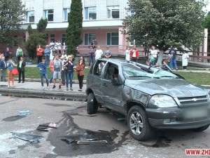 Автомобиль Chevrolet Niva на большой скорости ехал по ул. 1 Мая в сторону ул.Ивана Кочерги, на перекрестке зацепил Mitsubishi, которая двигалась по ул.Ивана Франко в сторону Большой Бердичевской, и врезался в едущую во встречном направлении «Ладу».