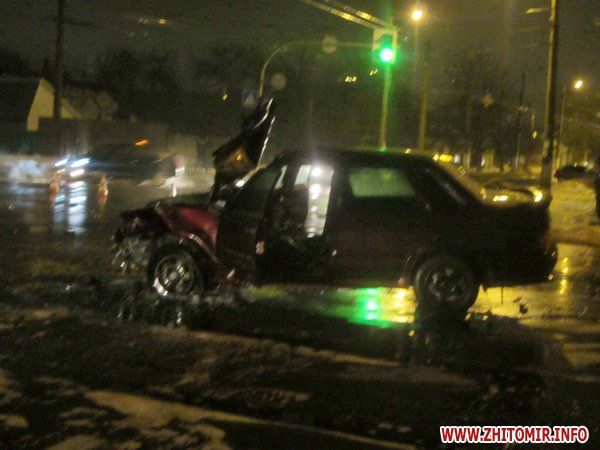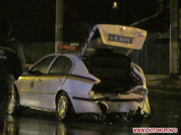 ДТП произошло около полуночи с 4 на 5 января на перекрестке улиц Ватутина и Щорса. По словам очевидцев аварии, автомобиль ВАЗ, двигаясь по Ватутина на большой скорости, врезался в автомобиль Госавтоинспекции, который приостановился на светофоре и как раз начинал двигаться с места, сообщает .