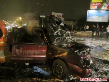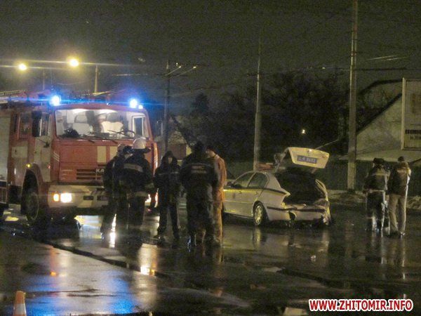 На место ДТП приехало несколько автомобилей ГАИ, скорая помощь и две пожарные машины, которые и потушили загоревшуюся легковушку. По предварительной информации в первом автомобиле было два сотрудника Госавтоинспекции, которые в аварии не пострадали, во втором автомобиле находился только водитель, житель Коломыи Ивано-Франковской области – его увезли в больницу медики.