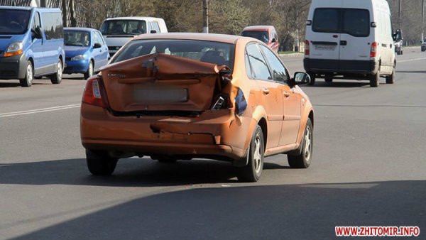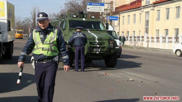 Утром 17 апреля, на выезде из Житомира столкнулись два автомобиля: военный «Спартан» и Chevrolet. ДТП произошло около 8.30 на перекрестке Баранова и Киевского шоссе: бронеавтомобиль въехал в зад легковушке, сообщает .