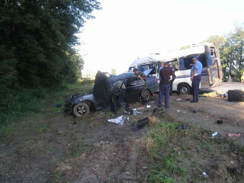 26 августа в 6:15 на 258 км автодороги ''Киев - Чоп'', вблизи с. Повчино Новоград -Волынского района водитель автомобиля BMW, гражданин Российской Федерации, во время выполнения маневра обгона выехал на полосу встречного движения и допустил столкновение с микроавтобусом Daimler Chrusler.