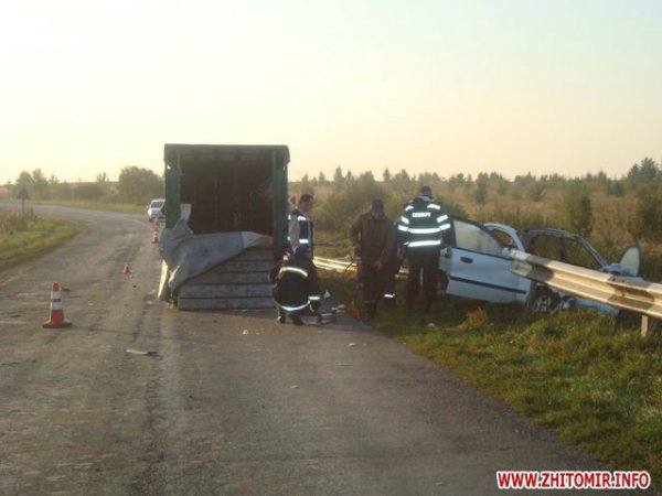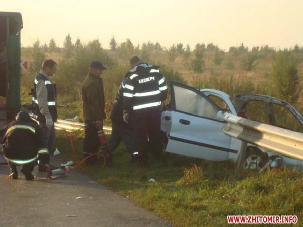 В результате дорожно транспортного происшествия 4 человека погибли и 1 человек травмирован, он в состоянии средней степени тяжести госпитализирован в Любарскую центральную районную больницу», - информируют спасатели.
