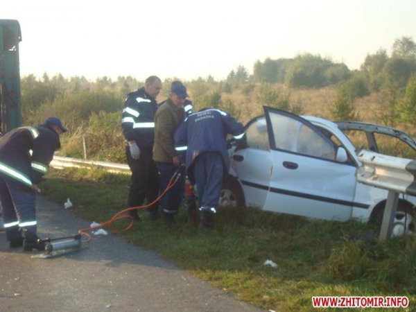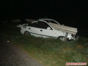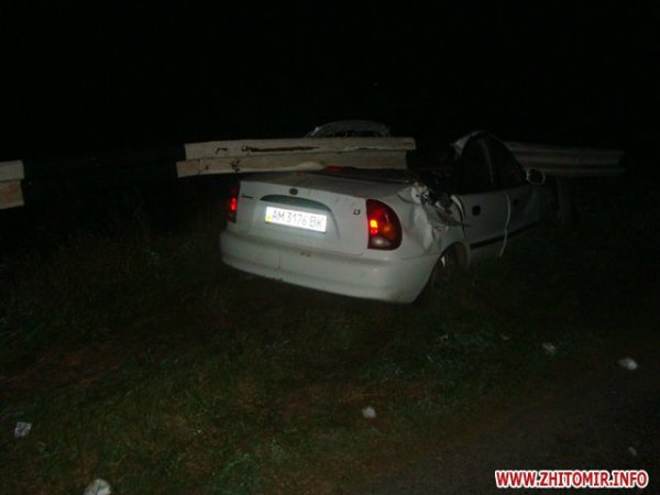 Возле пгт Краснополь Чудновского района на 173 км автодороги Кременец-Белая Церковь в 01:30, 13 сентября, водитель легкового автомобиля Daewoo Lanos не справился с управлением и допустил столкновение с отбойником.