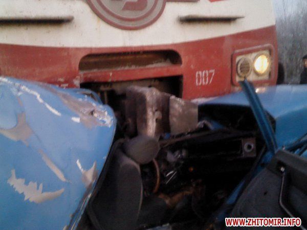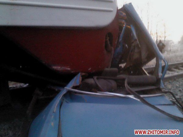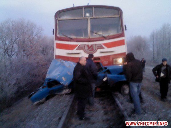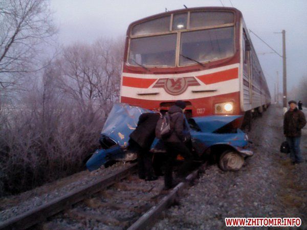29 декабря, в 06:40, на 5 км железной дороги Житомир-Фастов на переезде электропоезд Житомир-Киев столкнулся с легковым автомобилем ГАЗ-24, который заглох на переезде, сообщает .