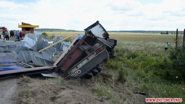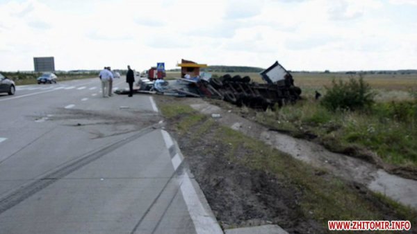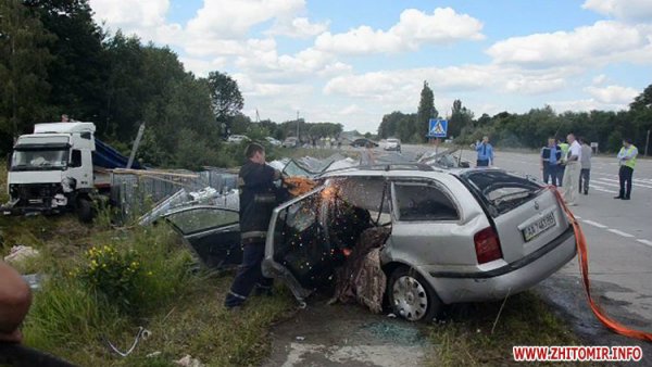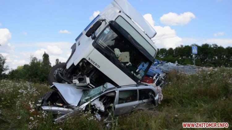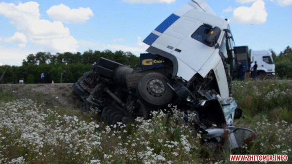 Водитель автомобиля Skoda Octavia, 44-летний житель Киева, двигаясь по второстепенной дороге в направлении города Малина со стороны пгт.Термаховка, не предоставил преимущество в движении грузовому автомобилю с полуприцепом Volvo FH, который ехал по главной дороге "Киев-Ковель" в направлении Киева, и протаранил грузовик.
