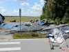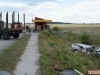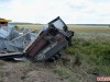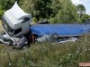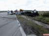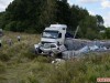 После столкновения автомобили сьехали в кювет и грузовой Volvo опрокинулся на Skoda Octavia.