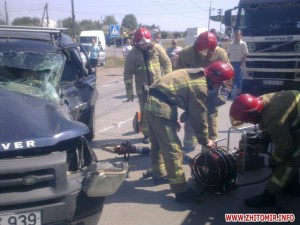Отделением 8-й государственной пожарно-спасательной части г. Коростень проводились работы по деблокированию погибшего из салона автомобиля с помощью гидравлических ножниц и приняты меры по обеспечению пожарной безопасности на месте дорожно-транспортного происшествия.