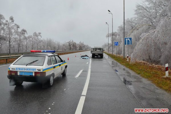 В результате ДТП водитель мотоцикла от полученных телесных повреждений погиб на месте происшествия. Его пассажир, 26-летний житель Житомирского района, получил телесные повреждения и был доставлен в медицинское учреждение.