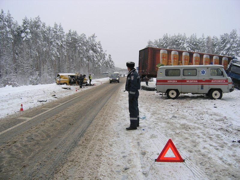 На автодороге Киев-Чоп в Житомирской области микроавтобус Volkswagen, который двигался в направлении столицы, столкнулся с грузовиком: водитель и пассажирка микроавтобуса погибли на месте ДТП.