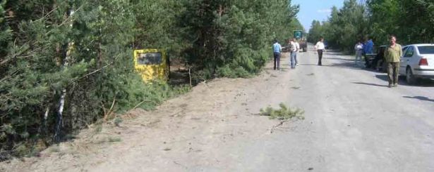 Вчера, около 14:00, на Житомирщине, на 7 км автодороги ''Радомышль - Раковичи'', вблизи с. Толстое Радомышльского района, водитель автобуса ''БАЗ'', двигаясь в направлении с. Раковичи, не выбрал безопасную скорость, не учел дорожную обстановку, не справился с управлением, в результате чего съехал в кювет и ударился о дерево.