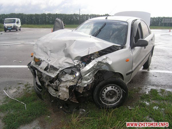«Около 6 утра на 36 километре автодороги Житомир-Могилев-Подольский Бердичевского района водитель автомобиля Daewoo Lanos, 32-летний житель Бердичевского района, выезжая со второстепенной дороги на главную не предоставил преимущество в движении и совершил столкновение с автомобилем ВАЗ 2106 под управлением 50-летнего жителя Винницкой области, который двигался по главной дороге.