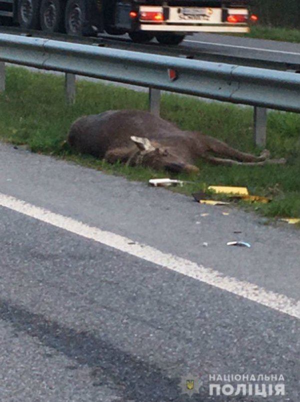 "Предварительно установлено, что водитель автомобиля DAF с полуприцепом, двигаясь в направлении Житомира, на закругленном участке дороги наехал на лося, который внезапно выбежал на проезжую часть", – говорится в сообщении.