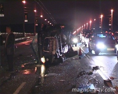 Как удалось установить у очевидцев произошедшего, Toyota Camry двигалась по второму ряду моста Патона в направлении Левого берега со скоростью 50 км/ч, что подтверждается и залипшей от удара на этой отметке стрелкой спидометра. В это время во встречном направлении по полосе реверсивного движения на запрещающий сигнал реверсивного светофора двигался Mitsubishi Pajero.