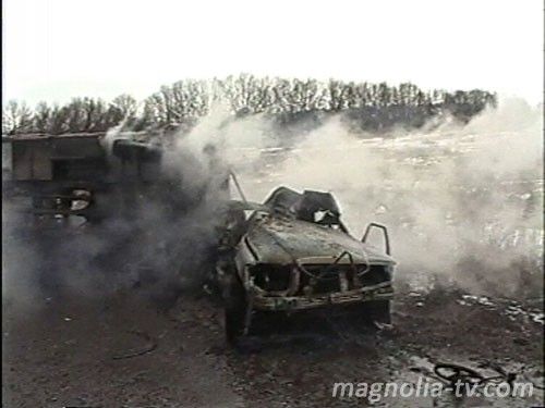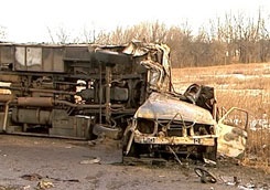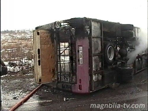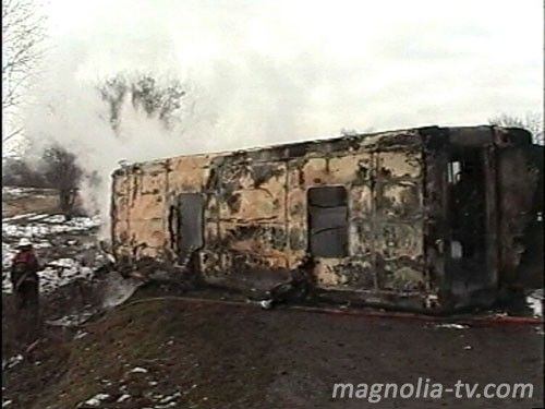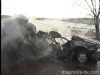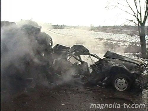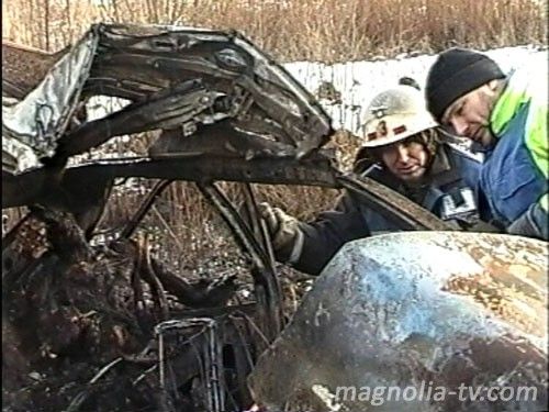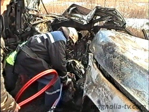 После удара обе машины загорелись. Четыре человека, находившиеся в легковом авто, сгорели. Еще один труп найден возле машины.