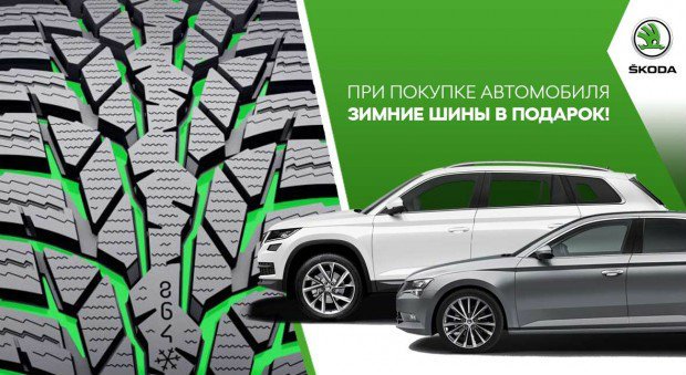 Только с 19 по 31 декабря, покупая автомобиль SKODA всего модельного ряда в любой комплектации – Вы получаете зимний комплект шин в ПОДАРОК!