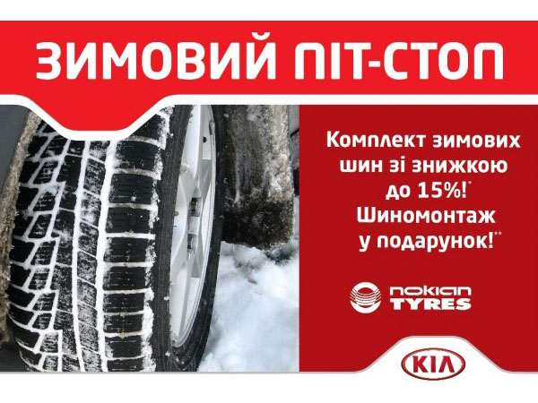 С 15 ноября по 31 декабря 2012 года каждый владелец автомобиля KIA имеет возможность приобрести комплект зимних шин Nokian со скидкой до 15%*.