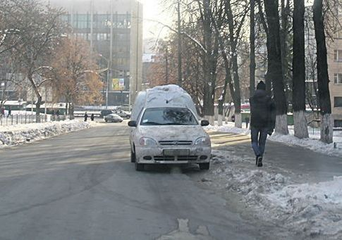 Но и это не является гарантией того, что утром получится легко тронуться с места — влажный украинский воздух приводит к тому, что даже расчищенный асфальт за ночь покрывается коркой льда. Бороться с этим легко, если возить с собой в багажнике небольшой кулек с песком и равномерно посыпать паркоместо его содержимым.