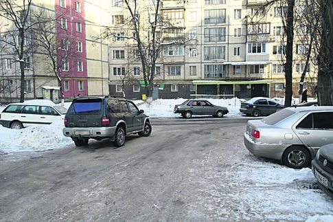Парковка, показанная на фото, создает сложности для водителей даже летом: вместо двух полос для разъезда машин остается одна. Кроме того, запаркованный таким образом автомобиль загораживает обзор и даже преграждает проход пешеходов, которым приходится обходить автомобиль, выходя при этом на проезжую часть. Однако ситуация с парковками в больших городах такова, что водители и пешеходы адаптировались к подобным сложностям и ведут себя осторожно. Но вот зимой в гололед ситуация меняется. Один из вариантов развития событий: пешеход поскальзывается и падает, водитель, въезжающий во двор под углом, бьет по тормозам — и машину заносит. Хорошо, если пострадает только железо...