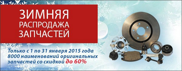 Дилерский центр Honda «ВиДи Инсайт» объявляет о начале зимней распродажи оригинальных запчастей на автомобили, мотоциклы и силовое оборудование, которая будет действовать до 31 января 2015 года. Специальные цены* со скидкой до 60% распространяются на более чем 8000 наименований оригинальных запчастей Honda!.