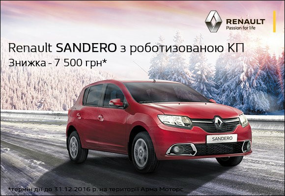 Друзі, Арма Моторс оголошує про запуск спеціальної пропозиції на Sandero та Sandero Stepway з роботизованою коробкою передач, що триватиме тільки до 31 грудня 2016 р. включно.