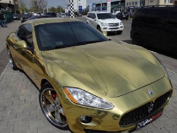 На одном из украинских сайтов появилось объявление о продаже элитной спортивной машины марки Maserati Granturismo. Автомобиль считается уникальным из-за своего золотистого тюнинга, сообщает .