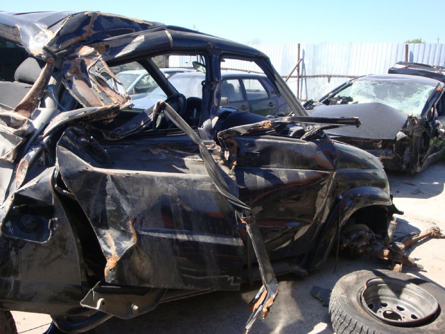 ухватиться. А в УАЗе верхнюю ручку сложно поймать в критической ситуации. А боковой, перед дверью, нет. Повреждения, полученные автомобилем при столкновении: оторвало кузов, передний мост, дырка в диске колесе сквозная