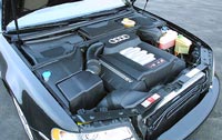 Во многих ситуациях S8 ведет себя отнюдь не как седан класса люкс, а как настоящая спортивная машина. Отчасти это происходит благодаря тому, что он легче многих своих аналогов. Все пружины и амортизаторы на нем несколько жестче, чем на его собратьях. Колеса – фирменные 18-дюймовые диски с шинами 245/45ZR18. В управлении А8 и S8 чувствуется ощутимая разница. В А8 подвеска слишком мягкая, и это чувствуется на плохих дорогах. К S8 нет вообще никаких претензий. Система quattro вселяет в водителя уверенность и спокойствие на любой дороге.