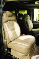 раскладывается в обширное ложе. Все сиденья покрыты высококачественной кожей двух тонов; стиль обшивки "Navigator".