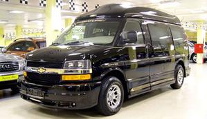 серийной модели микроавтобус Chevy Express. В отличие от легковых машин, такие автомобили не меняются кардинально при смене поколений. Микроавтобус остался рамным, опирающимся на прочную подвеску. Усложнилась конструкция фронтальных боковых подушек. Они отныне раскрываются в две стадии - исходя из силы столкновения. Если авария легкая, "air bag" раскрываются не полностью. А когда удар окажется действительно серьезным - в полную силу. Кроме того, в недра дверей имплантированы массивные балки, защищающие "экипаж" от боковых ударов. Изумительную шумо- и теплоизоляцию салона обеспечивают толстые фиберглассовые панели в дверях и